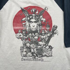 This vintage David Lee Roth raglan shirt in white and navy is a must-have for rock music enthusiasts. Perfect for casual wear, it features a comfortable fit and classic style that pays tribute to an iconic era in music history.