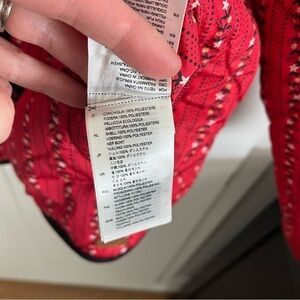 BRIXTON Reversible Faux Shearling Quilted Jacket in Mars Red Prairie Floral. Sherpa warmth with reversible comfort. Like the perfect vintage piece you've been searching for, this is a bomber-inspired jacket with a just-right fit. The interior is lined with cozy sherpa fleece while the exterior boasts textured onion quilting. Reverse the jacket to show the fuzzy finish and turn your new favorite into a neutral layer. Detailed with horn buttons and elastic sleeve cuffs. Horn buttons. Contrast binding. Welt pockets. Elastic sleeve cuffs.