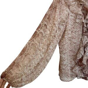 ANTHROPOLOGIE Long Sleeve Ruffled Snakeskin Print Blouse Brown