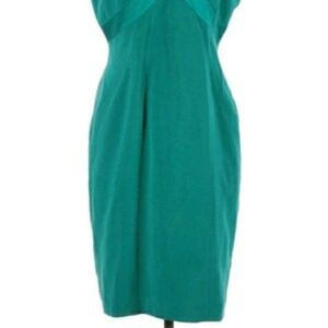 Vtg Adrianna Papell 100% Silk Satin Trim Accents Sheath Dress Green Sz 8