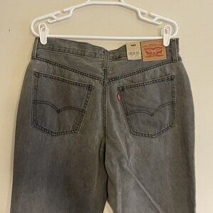 Levis Women 31 Gray Denim Splatter Hem Slouchy Mid Rise Low Pro Straight Jean.