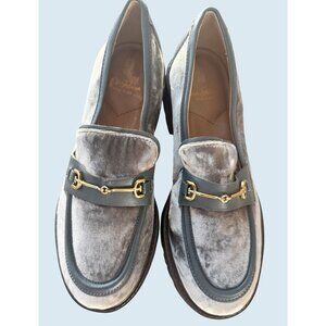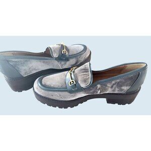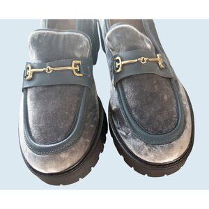 Nice pair of loafers by Sam Edelman. The Tully velvet lug sole loafer in blue / grey color. Gold hardware. Slip on. Almond toe. 1.5 inch heel. Rubber sole. Cushioned footbed. Size 7. Pre-owned and gently worn in really great condition!