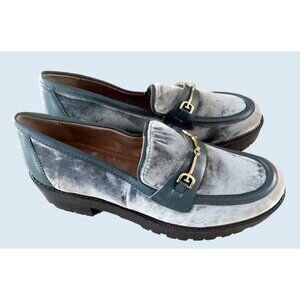 SAM EDELMAN Tully Velvet Lug Sole Loafer Blue Grey Size 7