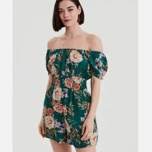 NWT American Eagle Off-Shoulder Puff Short Sleeve Shorts Romper Floral Boho M