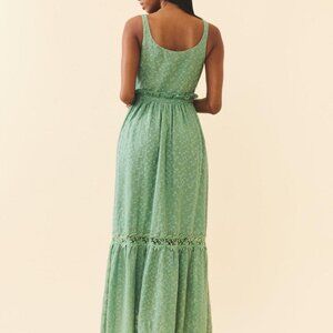 Meet Valeria, a easy maxi dress meant for garden parties and picnics. Crafted in a soft mesh with dainty roses embroidered all over, accented with crochet lace on the hem and skirt center. Fit is easily adjusted as needed with workable buttons, elastic at the waist finished with a workable tie.