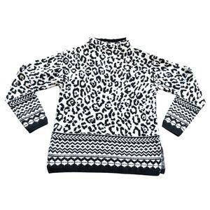 Ann Taylor Monochrome Cheetah Knit Mock Neck Sweater