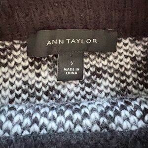 Elegant Ann Taylor sweater. Features a striking black and white knit design. Perfect for any occasion.