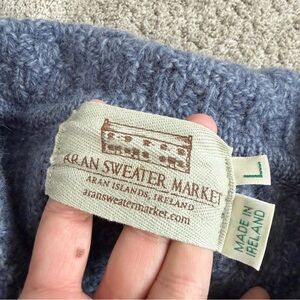 Aran Sweater Market 100% Merino Wool Ireland Cardigan Cable Knit Sweater Blue L