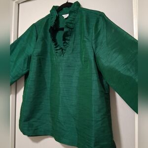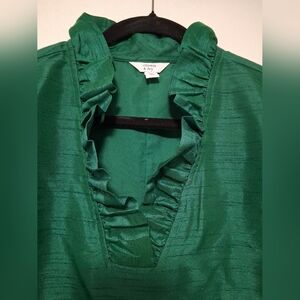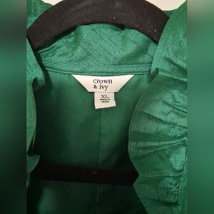 Crown & Ivy Emerald Green Ruffled Blouse-XL