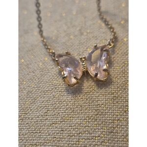 14k Gold Plated Pink Crystal Butterfly Necklace