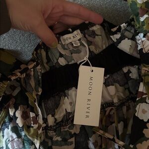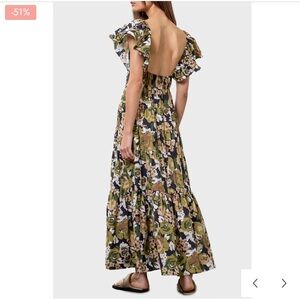 Moon River Flutter Sleeve Tiered Midi Dress Green Tan White Open Back M NWT