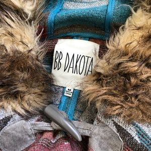 BB Dakota Multicolor Patterned Trench Coat with Faux Fur Hood