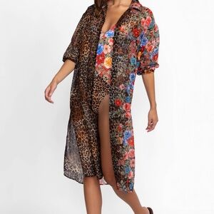 Johnny Was Cheetah Long Shirt Dress, Silk Coverup