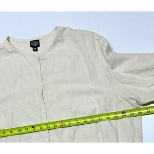 Eileen Fisher Cream Linen Silk Blend Mandarin Collar Button Blouse Shirt 2X