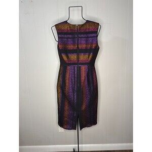 Diane Von Furstenberg Black Metallic Stripe Sleeveless Work Dress Size 4 Purple