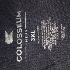 Men's shirt by Colosseum. Made from 100% polyester. Features care instructions on the label.