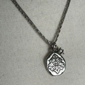 Brighton Double Strand Oval Pendant Necklace Silver Plated Single Clear Crystal