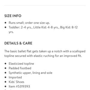 These are so darling! Like new condition! Metallic silver with scalloped edging. Slip on “ballet” slippers. I love these so much but unfortunately they run small so my daughter wasn’t able to wear them. They are more like a 10. Measures about 7” along the bottom. The actually shoe size says 11 but I’m listing these as a 10 since they are closer to that size and easier to grow into a shoe then not fit from the start! Perfect holiday shoe! I will ship immediately!!