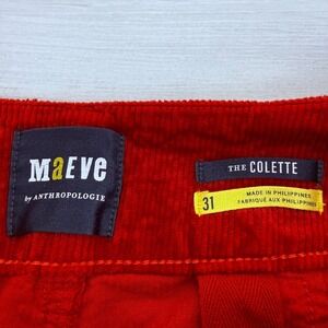 Maeve by Anthropologie red corduroy wide leg pants. The corduroy fabric offers a textured look and feel. The wide leg silhouette provides a relaxed and comfortable fit.