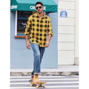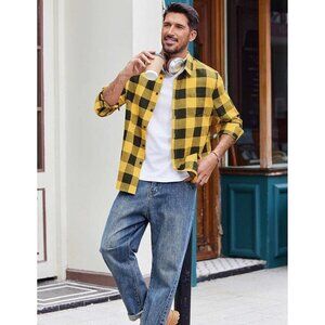 Buffalo Black Yellow Men Flannel Long Sleeve Plaid Button Up Shirt Jacket