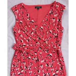 Lauren Ralph Lauren Red Floral Dress Shift Stretch Career Women's Size 12