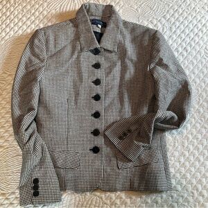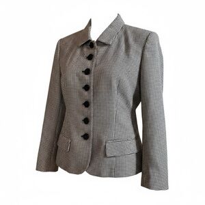 workwear, office chic, classic blazer, tailored trousers, midi skirt outfit, polished layers, fall business casual, work capsule wardrobe, Breeches blazer, vintage Breeches, houndstooth jacket, black white houndstooth, silk wool blazer, structured blazer, size 4 blazer, equestrian style jacket, preppy blazer, classic workwear, tailored jacket, retro blazer, made in USA blazer, fall layering blazer, statement blazer, minimalist blazer, career wear, business casual blazer, equestrian, schoolboy, English countryside, academia