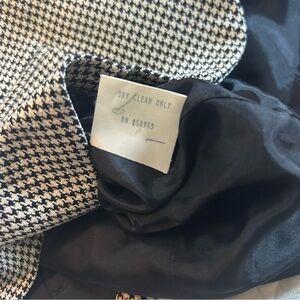 This vintage Breeches blazer is a standout piece crafted in the USA from a luxe silk and wool blend with a timeless black and ivory houndstooth pattern. Tailored to flatter with structured shoulders and princess seams, it adds instant polish to any look — perfect for layering over a turtleneck, crisp button-down, or even a graphic tee for that effortless preppy meets cool-girl vibe.