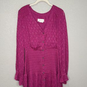 Anthropologie Dress Womens Small Pink Metallic Long Sleeve Shirt Dress Maxi