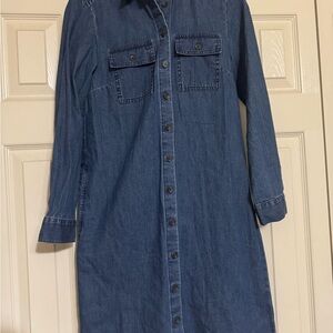 J.Crew Re-Imagined Jean Dress Button Down Long Sleeve Chest & Side Pockets sz 00