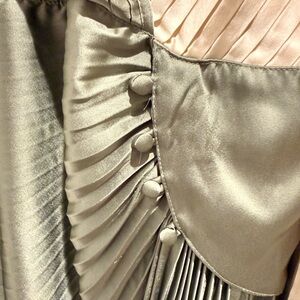 This elegant dress features a stunning combination of cream and green hues, perfect for any occasion. The pleated design and elastic waistband adds a touch of sophistication and style while being comfortable.