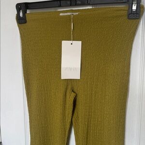 Zara Moss Green Knit Flare Trousers