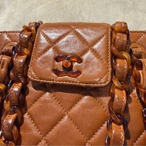 vintage chanel bag, chanel 90s bag, chanel lambskin bag, chanel quilted bag, chanel resin chain bag, tortoiseshell chain bag, chanel shoulder bag, chanel brown bag, vintage designer bag, rare chanel vintage, karl lagerfeld era chanel, collectible chanel bag, chanel diamond quilted bag, vintage luxury handbag, chanel classic style bag
