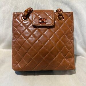 Vintage CHANEL Brown Lambskin Quilted Resin Chain Shoulder Bag 90s Rare Karl Era
