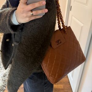 This rare vintage Chanel piece showcases the exceptional craftsmanship of Chanel’s golden era, with soft lambskin leather, beautifully puffy quilting, and precise stitching. The warm brown tone paired with the tortoiseshell chain creates an elegant and unique vintage aesthetic rarely seen in modern Chanel collections.