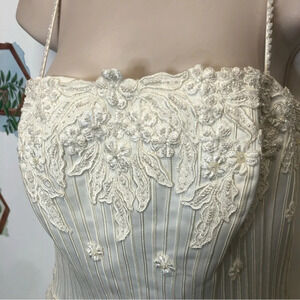 Mon Cheri wedding dress floral beading cream women’s size 10 fairy like new