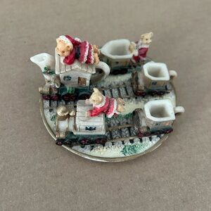 Vintage resin tea set in green cabbage or lettuce leaf theme. Includes teapot, cups, and saucers. Perfect for collectors.