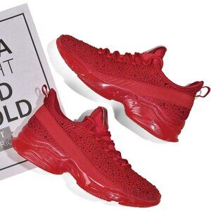 Women's Rhinestone Mesh Slip On Walking Breathable Glitter Red Sneaker Shoes