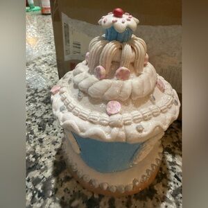 Add charm to your holiday decor with this delightful set of 3 festive cupcake houses. Featuring vibrant colors and intricate details, these decorations bring a whimsical touch to any space. Perfect for creating a cozy holiday atmosphere.