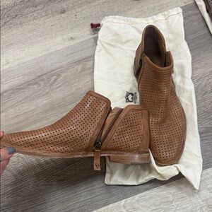 Elegant tan chukka boots with perforated design. Crafted by Trask for style and comfort.