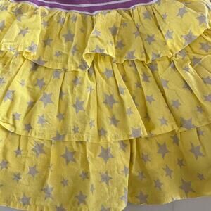 This Mini Boden Hopscotch Dress is in excellent condition and ready for a new home! The dress features a purple long sleeve top and a yellow star print ruffle skirt. The mixed print design is playful and fun, perfect for any occasion.