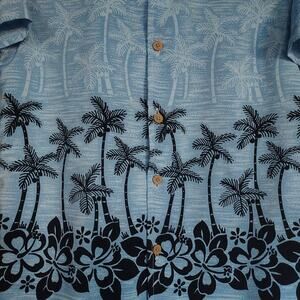 Vintage 90s Sideout Hawaiian Tropical Blue button down short sleeve shirt