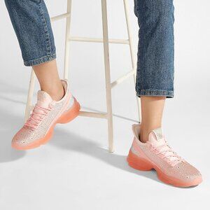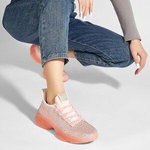 【STYLISH DESIGN】:The fashion sneakers with Rhinestones Embellishment can make you more Attractive and Dazzling! Sculpted Chunky Transparent Outsole looks like jelly,super cute and beautiful,real eye catcher!