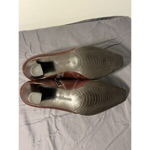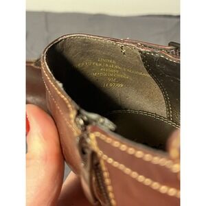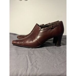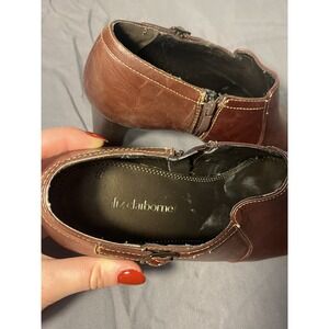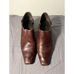 Liz Clarborne women's 9 brown leather ankle boots buckle block heel