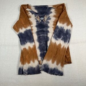Keywords: bikercore, Harley Davidson, tie dye, butterfly graphic, long sleeve, v neck, womens XL, casual, biker, rocker, summer, fall, spring, graphic tee, lettuce hem