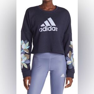 Adidas Cropped Crewneck Sweatshirt Floral Graphic Sleeves | XS