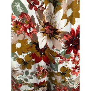 Bloom vibrantly in this charming floral print tank top. The soft ivory fabric bursts with a lively garden of red, brown, and coral blossoms, creating a look that is both eye-catching and delightfully feminine. A delicate, intricate crochet detail adorns the back neckline, adding a touch of artisanal charm and a peek of subtlety