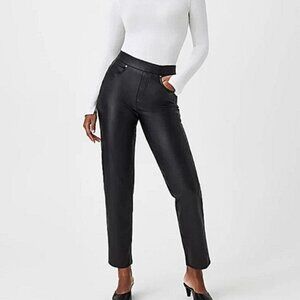 NWT SPANX II Slim Straight Faux Leather Pant Luxe Black 20528Q Women's 1X PETITE