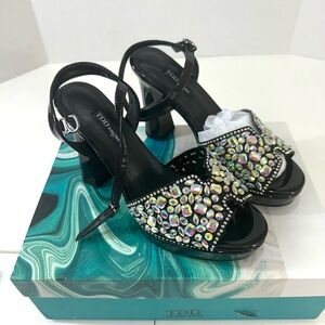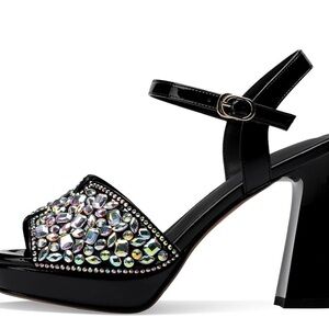Black Rhinestone Platform Sandals