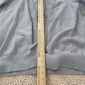Free People Beach Light blue knit cardigan with matching cropped pants. Both size large. See photos for measurements. Pants are cropped and have one small spot on back. Not super noticeable. Perfect for lounging or casual outings.