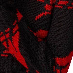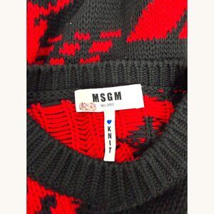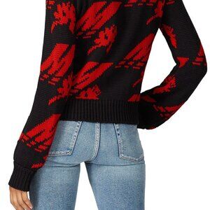 Black and red knit (50% Acrylic, 50% Wool). Sweater. Long sleeves. Crew neckline. 22" from shoulder to hemline. Imported.